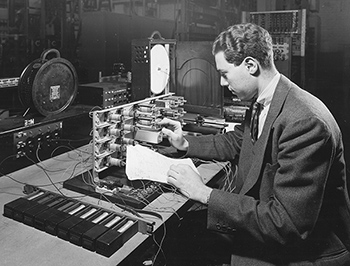 In 1941, Mr. Joel began working on military cryptographic systems that used electromechanical relays and complex switching circuits. Their important work created a machine to transmit and received coded teletype messages. This system was adopted by the Army Signal Corps and the Navy for secret communications. (17)